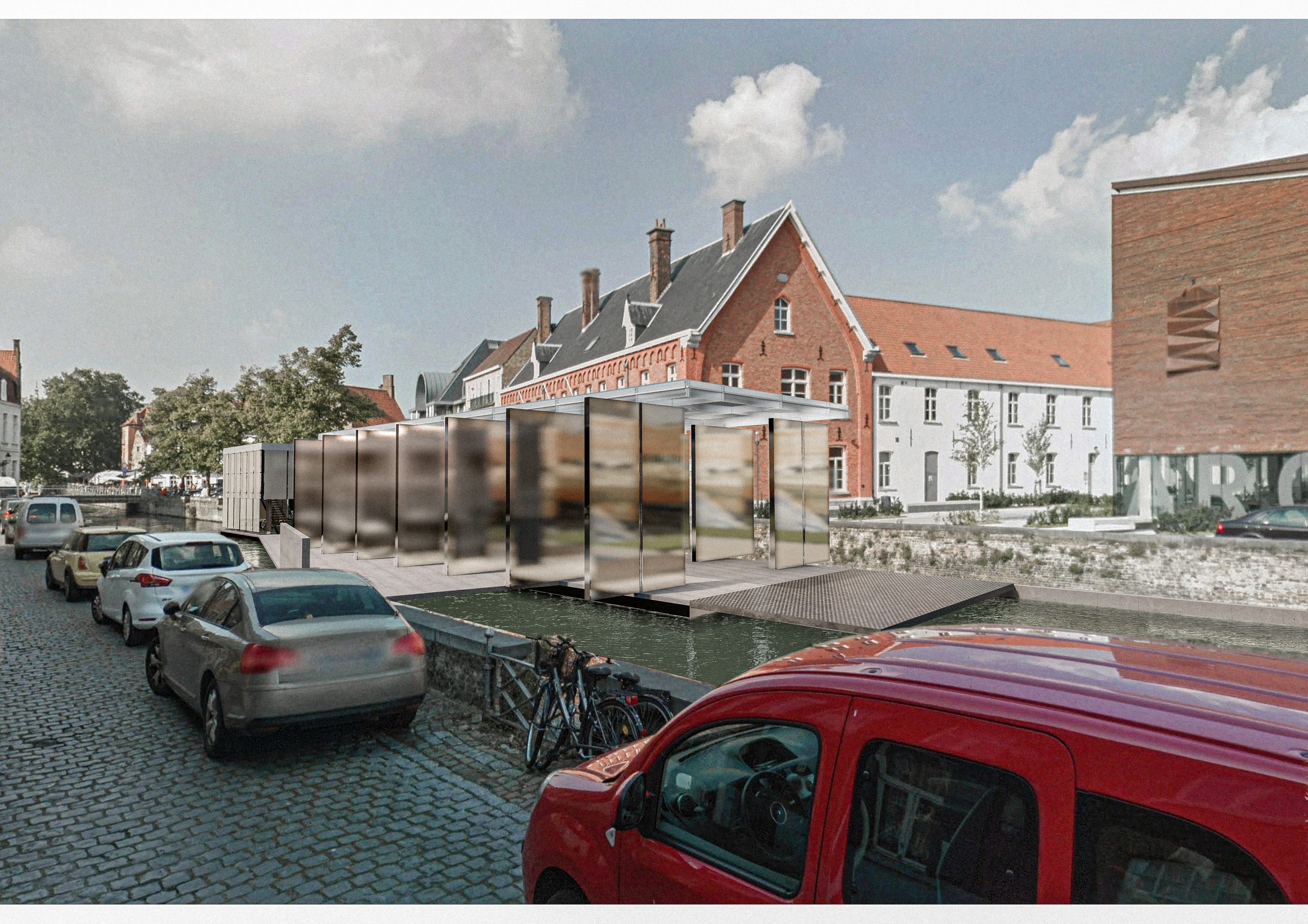 In Brugge, the prototype features solid foundations, platforms, and flexible volumes. Solid elements, such as columns and grains, provide stability, while platforms establish connections between land and water. Flexible volumes adapt to their surroundings, transforming spaces and appearances. The design harmonizes different elements, creating a dynamic urban platform that blends public and private spaces. Inspired by Brugge’s water relationships, the project redefines spaces with modular, sustainable components.